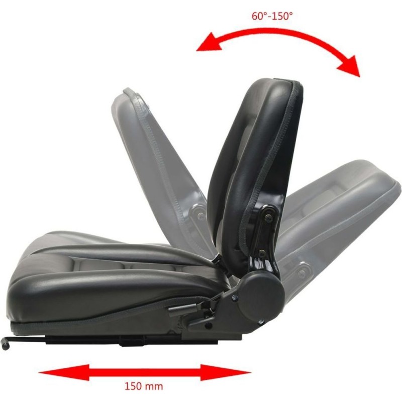 Siedzenie do ciągnika jest także wyposażone w prowadnice, które ułatwiają przesuwanie fotela w przód/tył na długości 150 mm oraz oparcie regulowane pod kątem od 60° do 150°, dzięki czemu zawsze ustawisz fotel w najwygodniejszej pozycji. Instalacja jest łatwa.