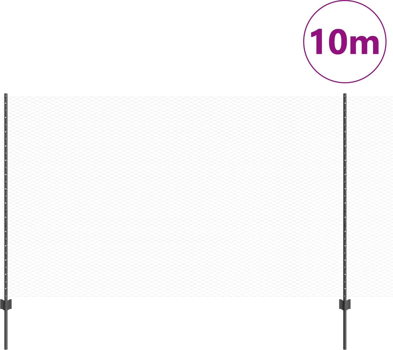 Słupki płotu vidaXL 10 szt. U-Channel szare 140 cm stalowe, Płot heksagonalny vidaXL szary 1,4x10 m stalowy