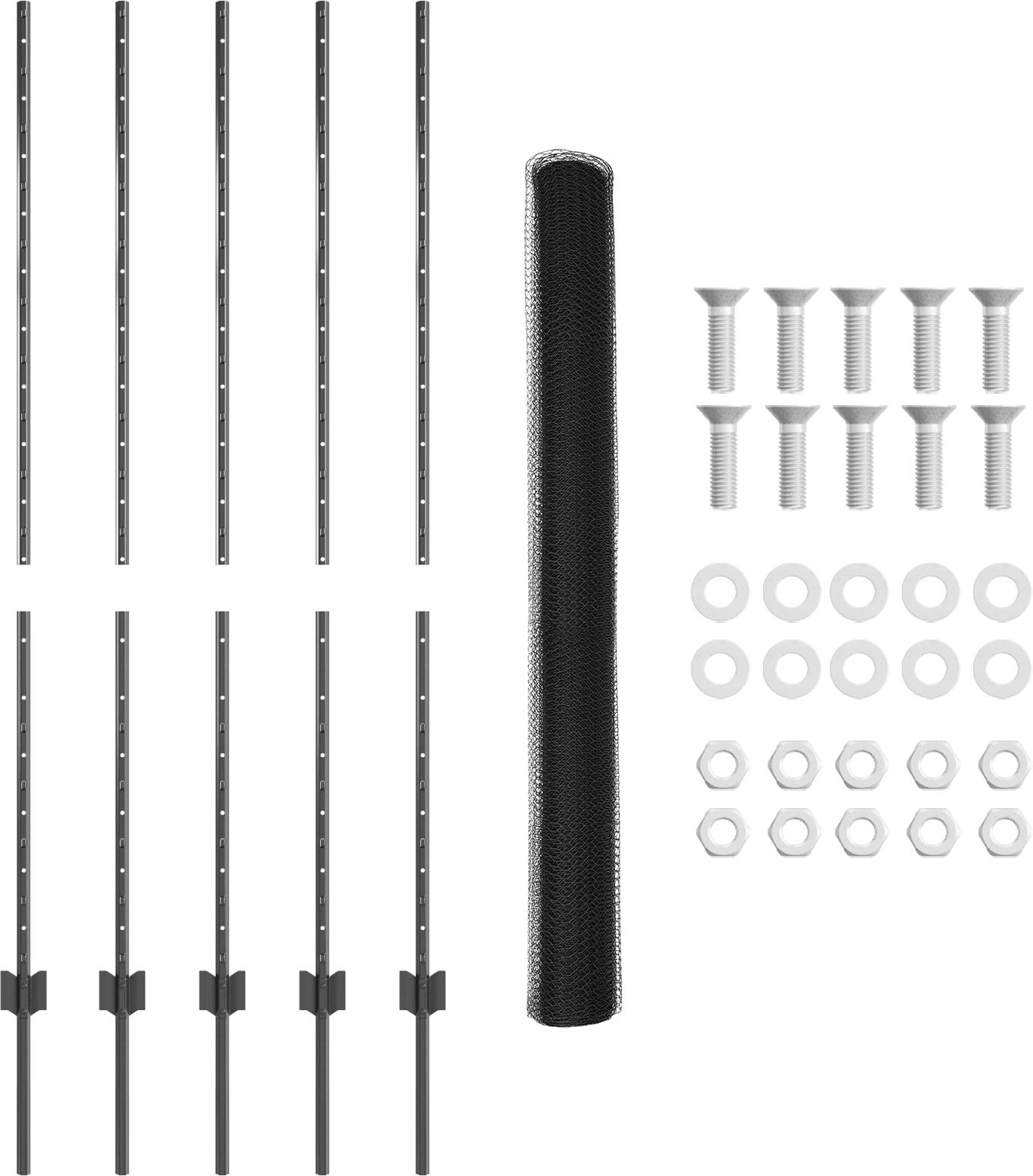 - Pełny zestaw: Zawiera rolkę siatki heksagonalnej i pięć słupków dla stabilnej konstrukcji.