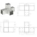 Elektrogalwanizowany łącznik umożliwia łatwe łączenie i stabilizację belek. Wszystkie łączniki mają fabrycznie nawiercone otwory. Łącznik ten jest przeznaczony do 4 kwadratowych belek drewnianych o grubości 81 mm.