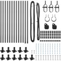 - Delivery Contains: 11 x słupek, 2 x słupek kątowy, 11 x płyta podstawowa, 11 x plastikowa przykrywka, 33 x plastikowa wspornik do drutu naprężającego, 2 x przykrywka słupka kątowego, 2 x akcesoria do słupka kątowego, 3 x napinacz, 1 x drut wiążący 25 m, 1 x drut naprężający 80 m