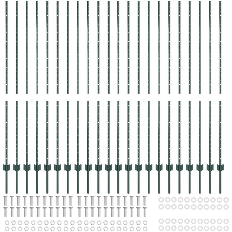 vidaXL Słupki ogrodzeniowe 22 szt. U-Channel Zielone 200 cm Stal