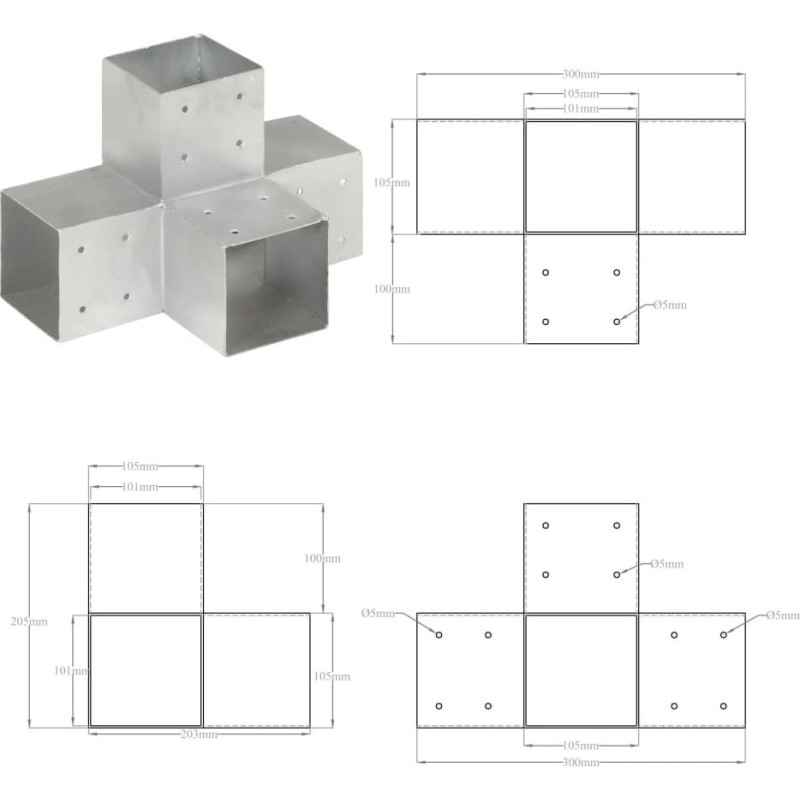 vidaXL Łączniki w kształcie X, 4 szt., galwanizowany metal, 101x101 mm
