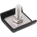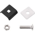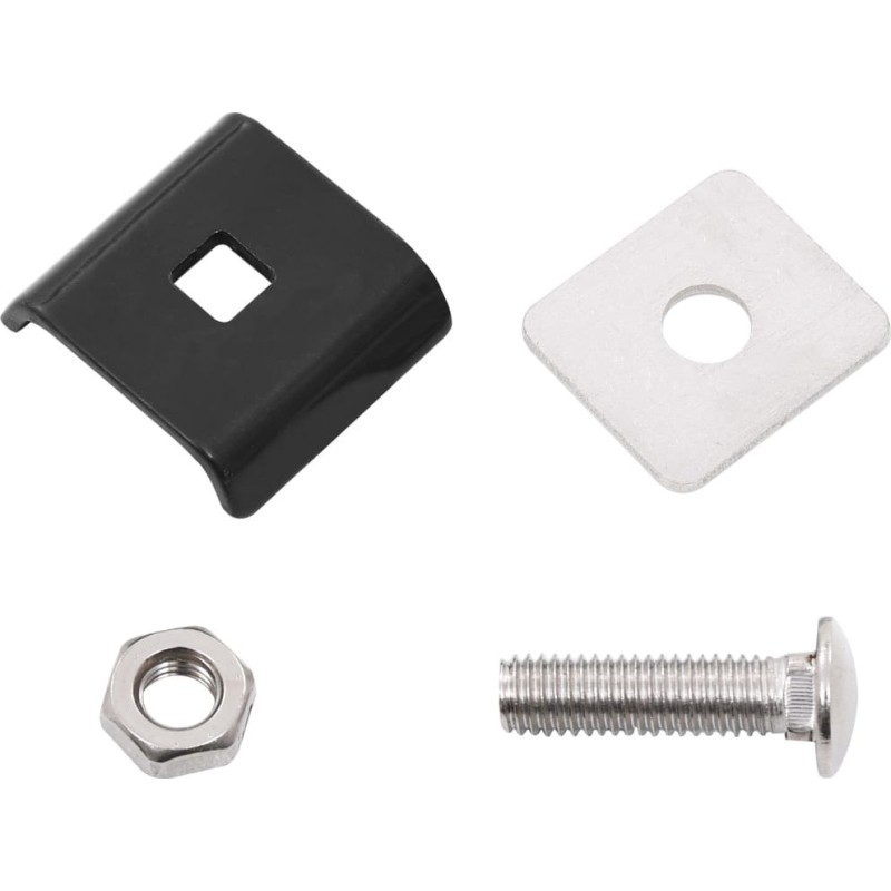Przednia płytka, płytka montażowa, śruba i nakrętka wykonane są z galwanizowanej ogniowo stali. Zestaw jest odporny na rdzewienie i zapewnia długotrwałe użytkowanie.