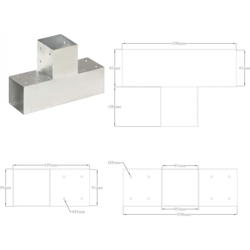 vidaXL Łączniki w kształcie T, 4 szt., galwanizowany metal, 91x91 mm