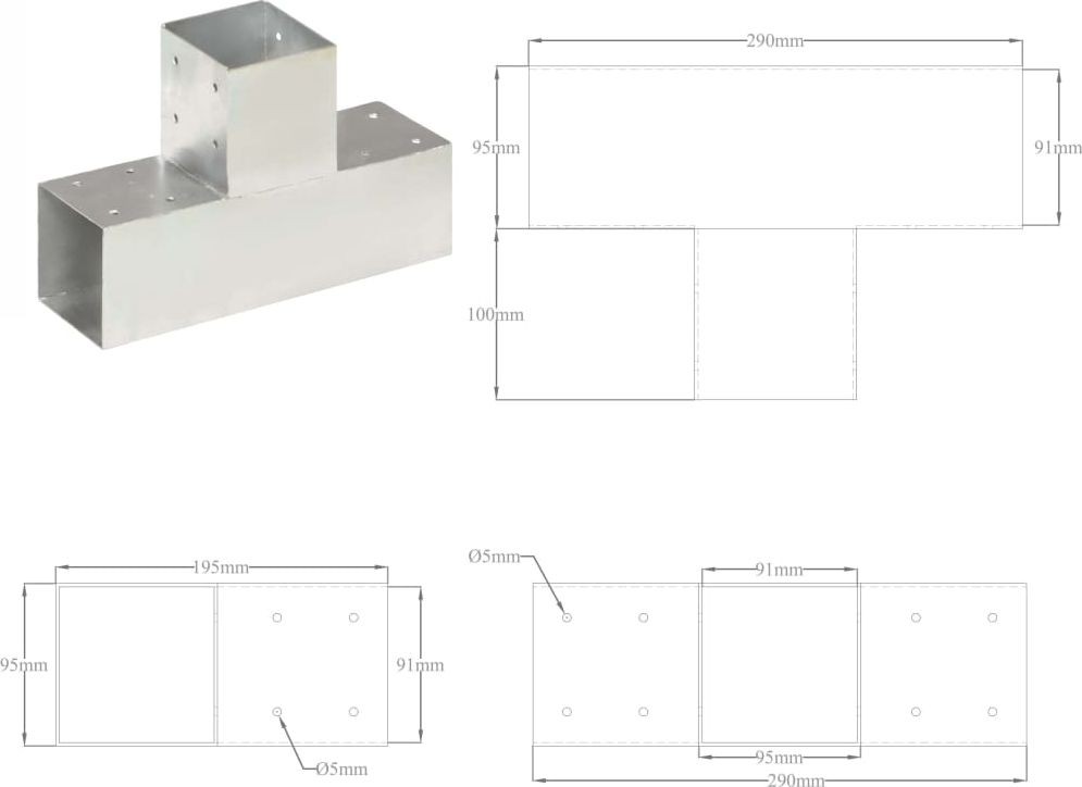 Elektrogalwanizowany łącznik umożliwia łatwe łączenie i stabilizację belek. Wszystkie łączniki mają fabrycznie nawiercone otwory. Ten łącznik jest przeznaczony do 3 kwadratowych belek drewnianych o grubości 91 mm.