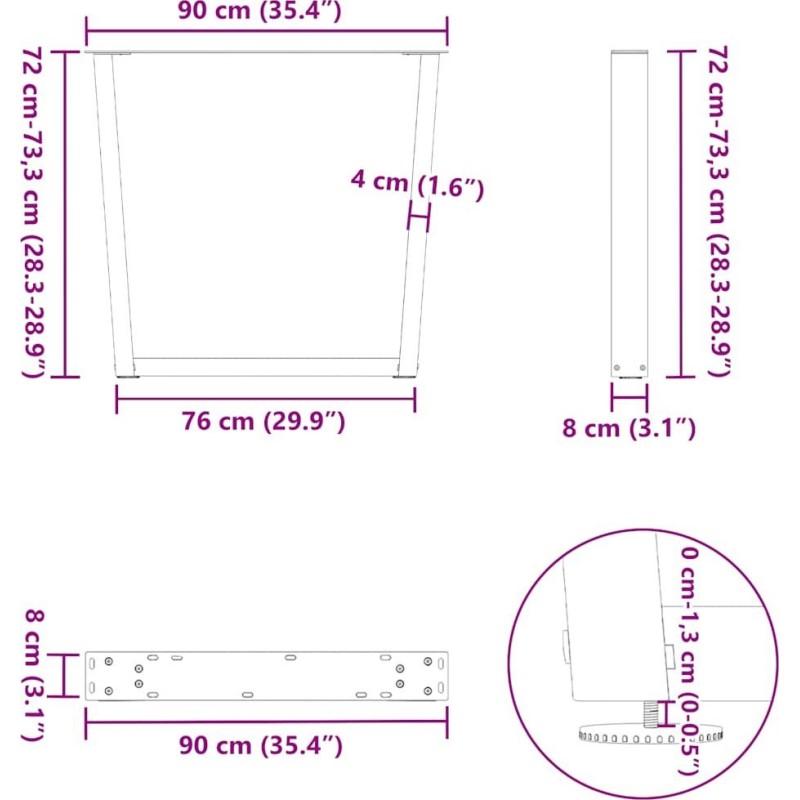 - Praktyczna konstrukcja: Noga stołu jadalnego jest wyposażona w regulowane stopki poziomujące, które zapewniają stabilność nawet na nierównej podłodze i minimalizują zarysowania podłogi. Dodatkowo, uchwyt posiada nawiercone otwory i dołączone śruby, za pomocą których można przymocować nogę do blatu stołu (brak w zestawie), co ułatwia montaż.