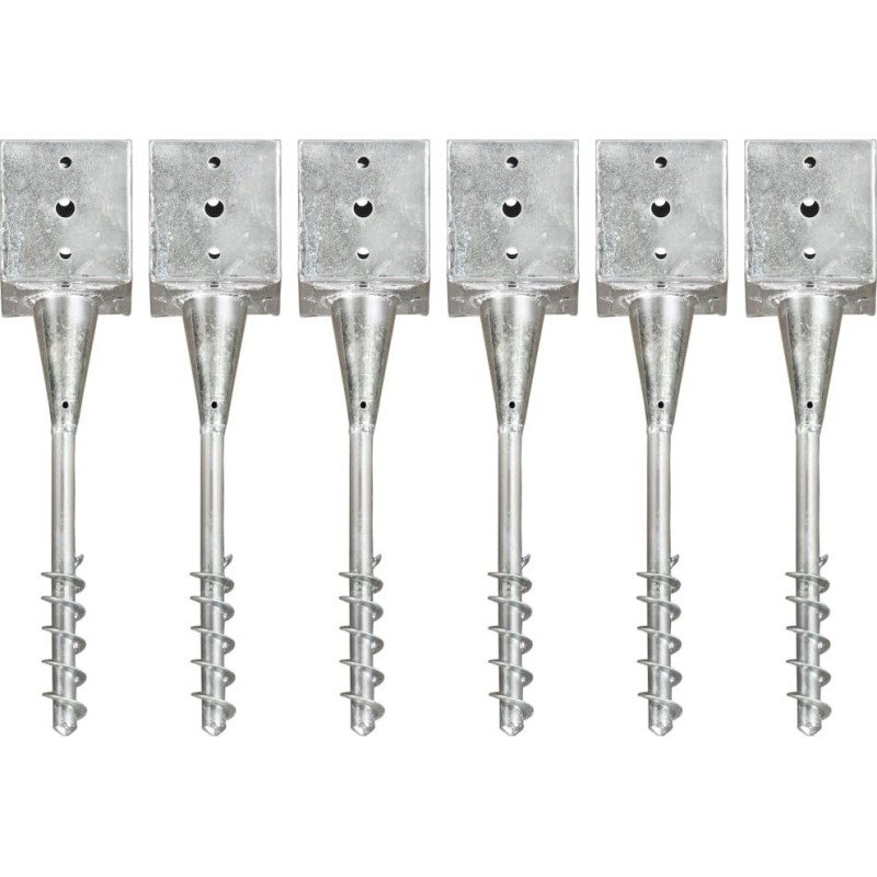vidaXL Kołki gruntowe, 6 sztuk, srebrne, 12 x 12 x 56 cm, stal (145444)