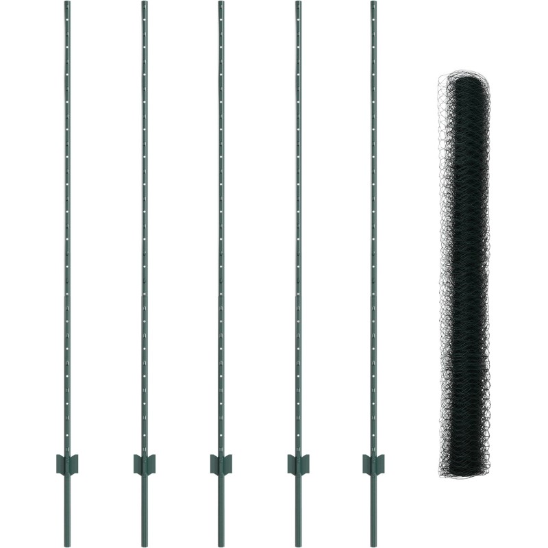 - Kompletny zestaw: Każdy pakiet zawiera pięć słupów i jedną rolkę siatki sześciokątnej, aby mieć wszystko, co potrzebne.
