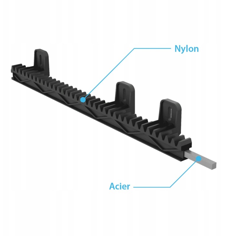Wzmocniona konstrukcja listwy zębatej, z rdzeniem stalowym wewnątrz nylonowej obudowy, zapewnia dodatkową sztywność oraz długą żywotność. To sprawia, że produkt jest odporny na intensywne użytkowanie oraz zmienne warunki atmosferyczne.