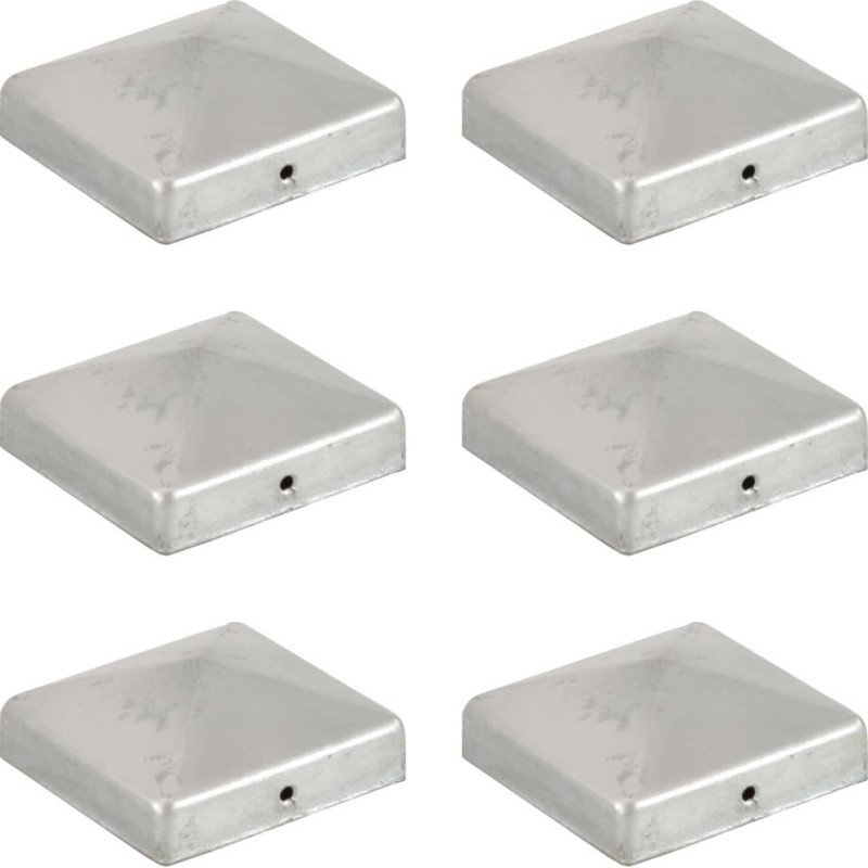 vidaXL Zatyczki na słupki, 6 szt., galwanizowany metal, 81x81 mm