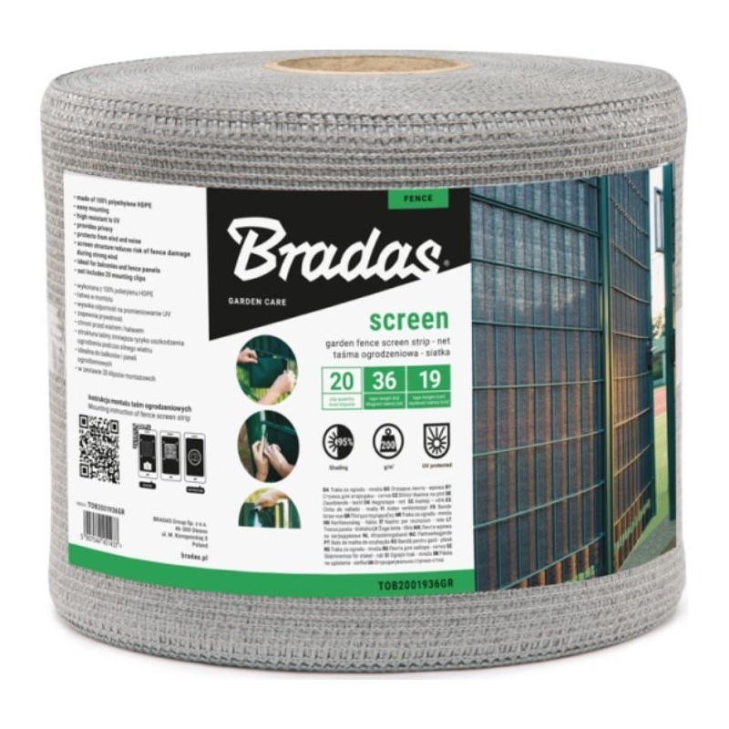 Bradas Taśma ogrodzeniowa balkonowa jasnoszara 19cm x 36m + klipsy BRADAS 1464