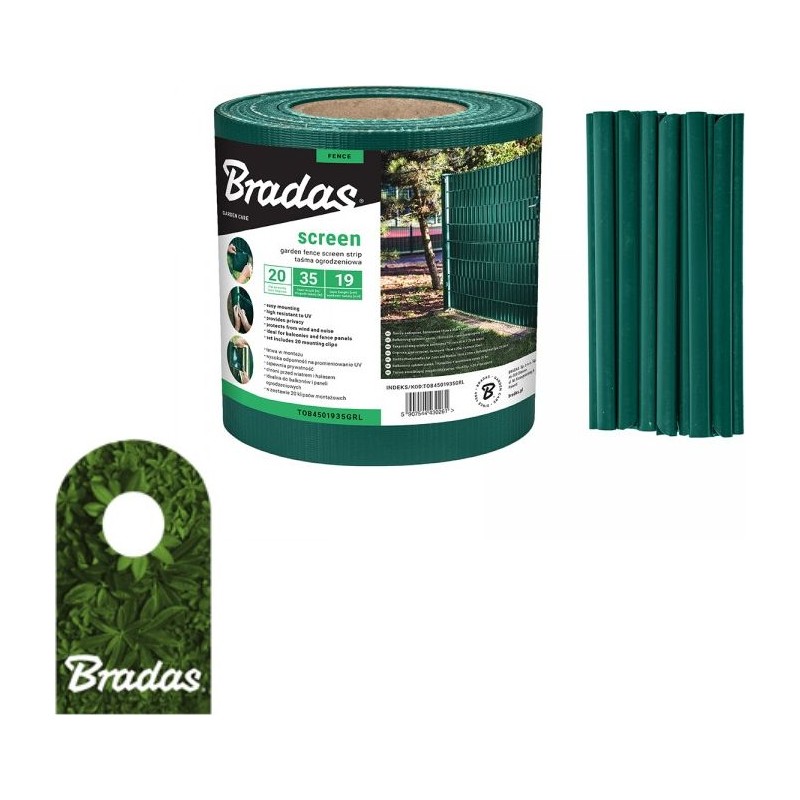 Bradas Taśma ogrodzeniowa balkonowa zielona 19cm x 35m + klipsy BRADAS 0261