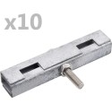 Wykonane z galwanizowanej stali łączniki w kształcie litery U są odporne na rdzę, co zapewnia długotrwałe użytkowanie. W skład dostawy wchodzi 10 zestawów w jednym pudełku, a każdy z nich obejmuje: 2 złącza w kształcie litery U, 1 śrubę podsadzaną oraz 1 nakrętkę.