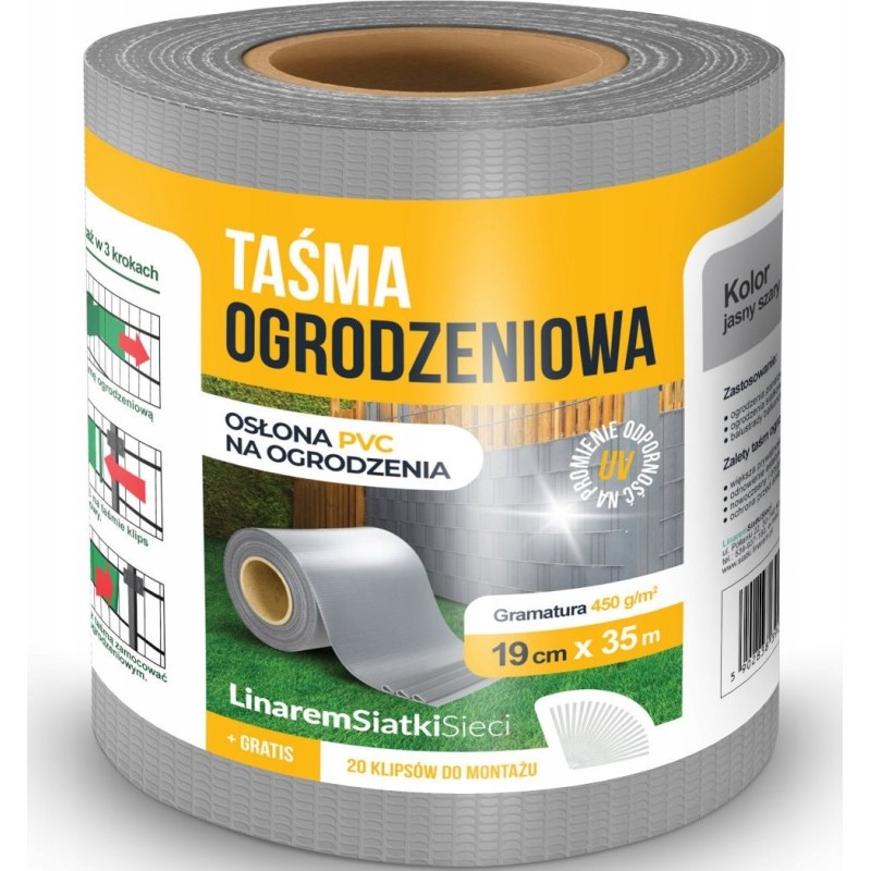 Linarem SiatkiSieci TAŚMA OGRODZENIOWA SZARA 19cmx35m OSŁONA NA OGRODZENIE PANELOWE PŁOT +UV