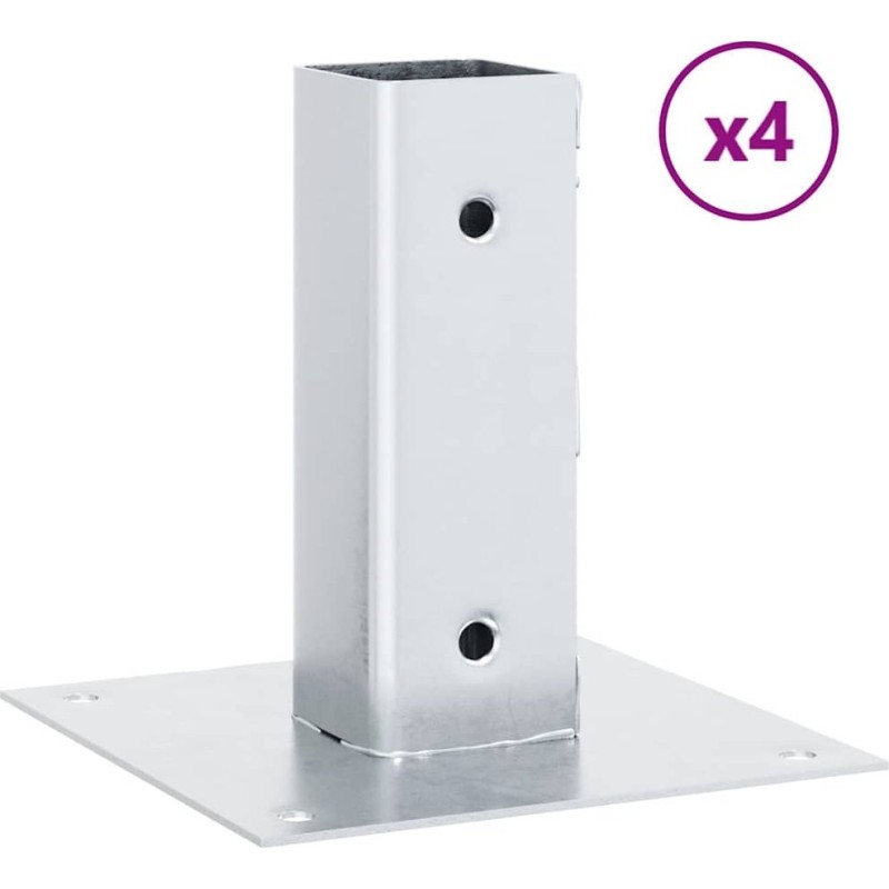 vidaXL Podstawy słupków kwadratowe 4 szt. Srebrne Stal ocynkowana