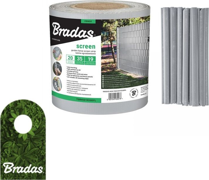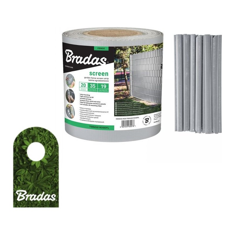 Bradas Taśma ogrodzeniowa balkonowa jasnoszara 19cm x 35m + klipsy BRADAS 0292