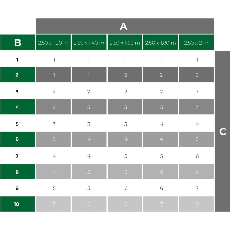 - C - potrzebna ilość rolek do osłony ogrodzenia