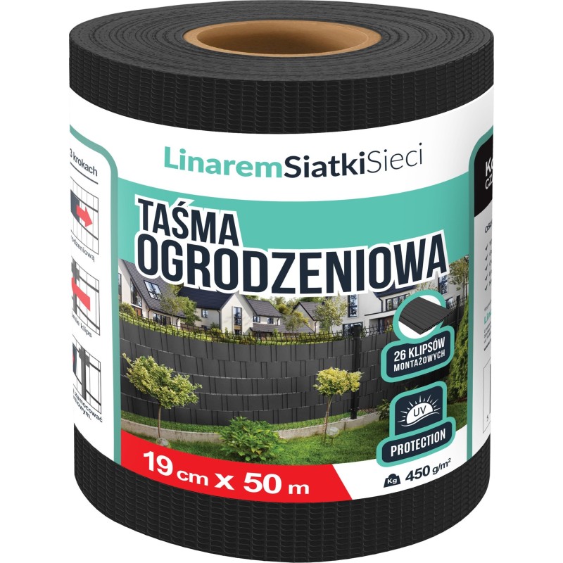 Linarem SiatkiSieci TAŚMA OGRODZENIOWA CZARNA 19cmx50m OSŁONA NA OGRODZENIE PANELOWE PŁOT +UV