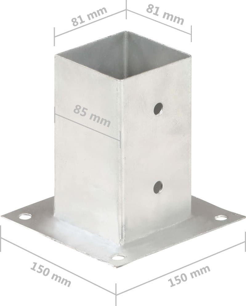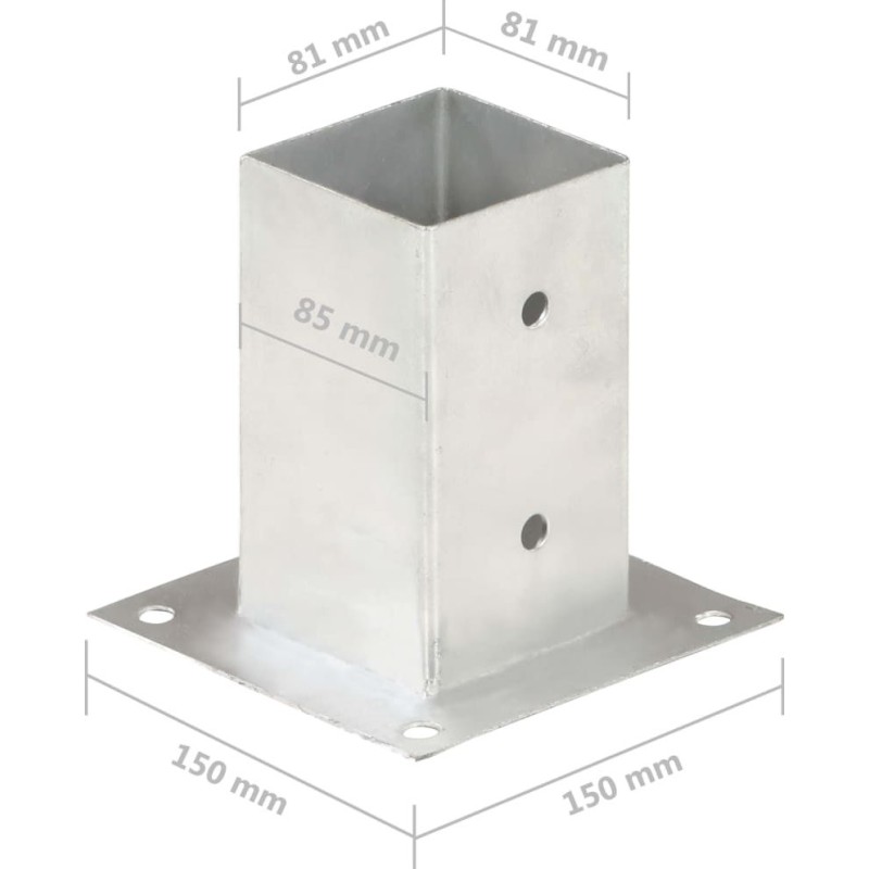 vidaXL Podstawy słupów, 4 szt., galwanizowany metal, 81 mm