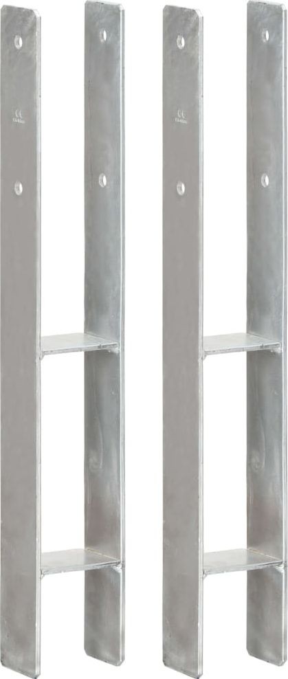 vidaXL Kotwy do słupków, 2 sztuki, srebrne, 8 x 6 x 60 cm, stal (145296)