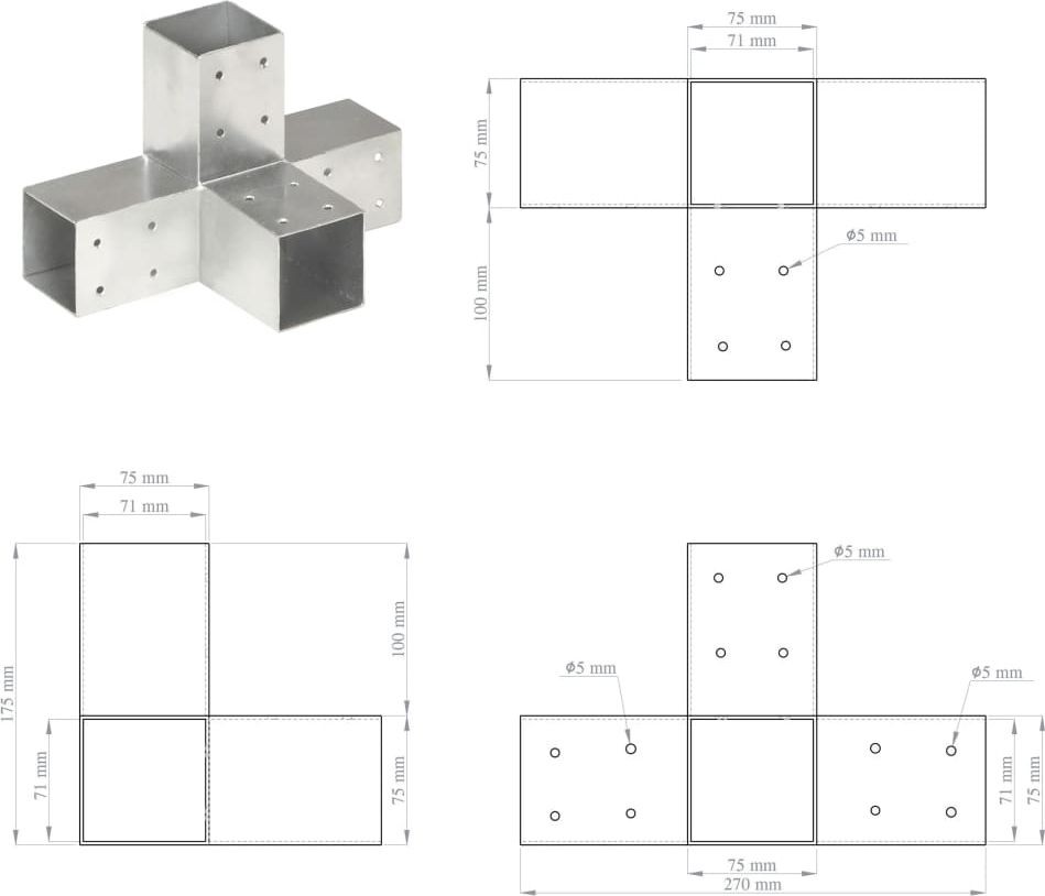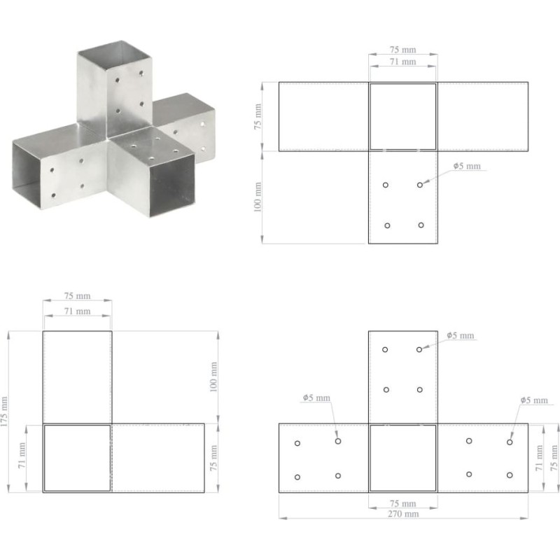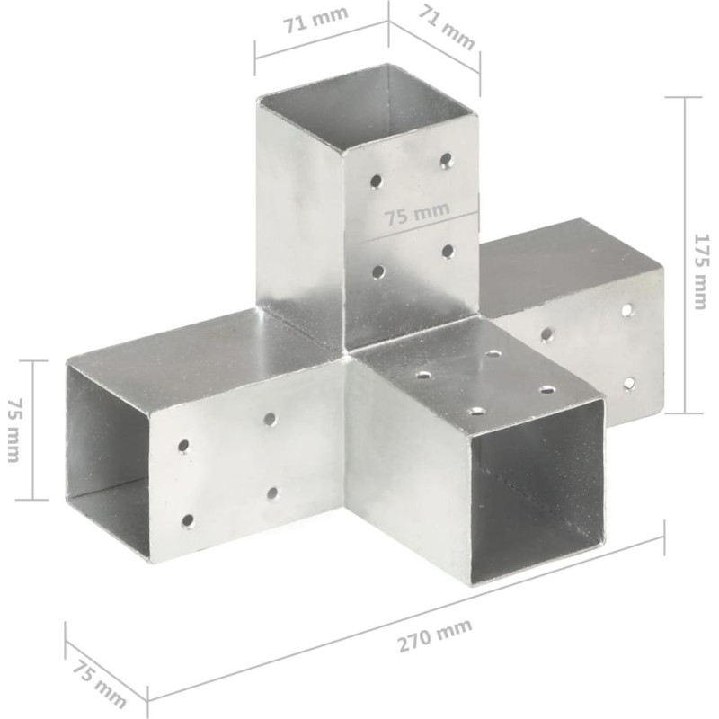 vidaXL Łącznik do słupków w kształcie X, galwanizowany metal, 71x71 mm