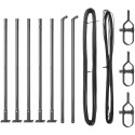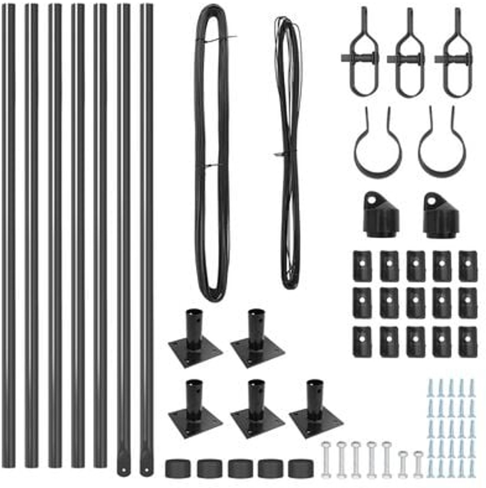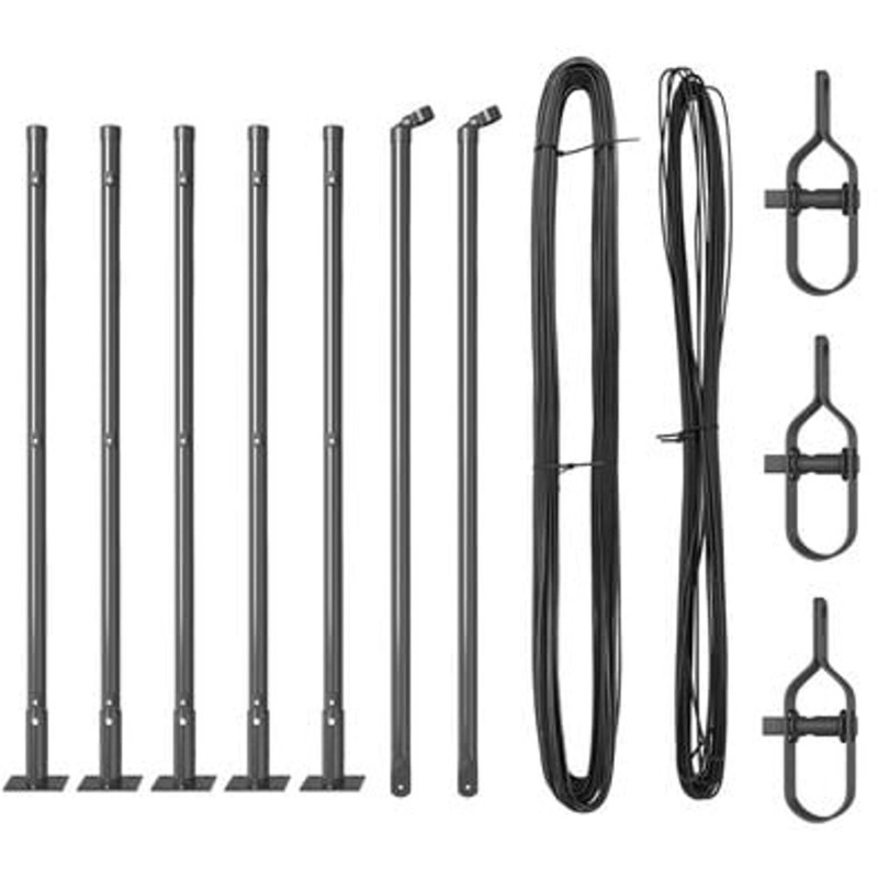 - Dostarczane zawiera: 5 x słup, 2 x słup kątowy, 5 x płyta podstawowa, 5 x plastikowa nakładka, 15 x plastikowy wkładka naciągowa, 2 x nakładka kątowa, 2 x elementy mocujące słupa kątowego, 3 x napinacz, 1 x 25 m drut wiążący, 1 x 33 m drut naciągowy