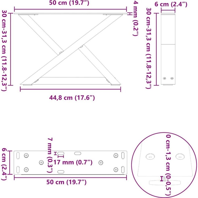 vidaXL Nogi do stolika kawowego 2 szt. Antracyt 50x(30-31,3) cm Stal
