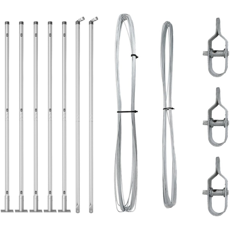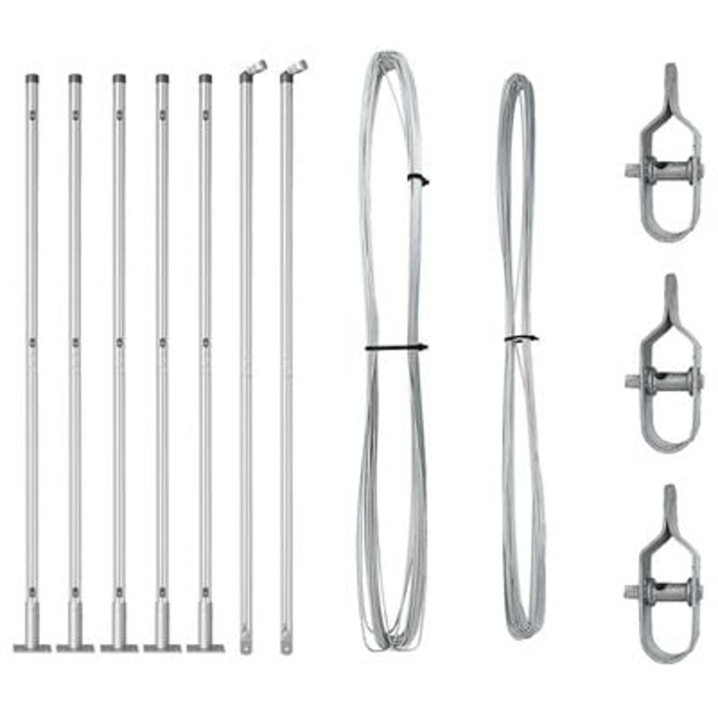 - Delivery Contains: 5 x Post, 2 x Angle post, 5 x Base plate, 5 x Plastic cap, 15 x Plastic tension wire supporter, 2 x Angle post cap, 2 x Angle post hardware, 3 x Tensioner, 1 x 25 m Binding wire, 1 x 33 m Tension wire