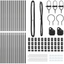 - Prosty montaż: Zestaw zawiera nakrywki, druty napinające i wsporniki, co znacznie ułatwia instalację.