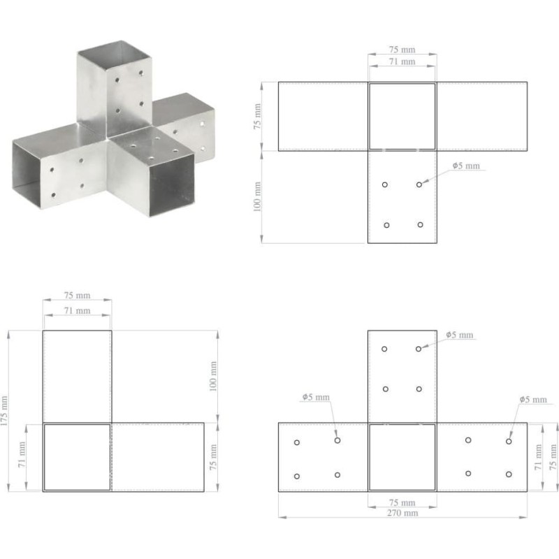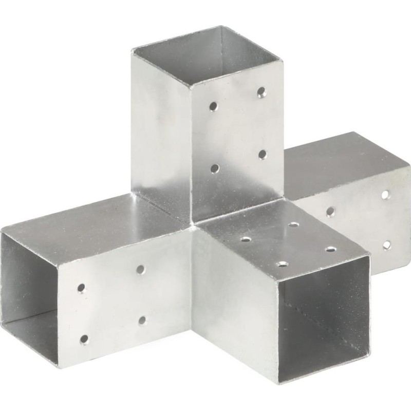 Elektrogalwanizowany łącznik umożliwia łatwe łączenie i stabilizację belek. Wszystkie łączniki mają fabrycznie nawiercone otwory. Łącznik ten jest przeznaczony do 4 kwadratowych belek drewnianych o grubości 71 mm.