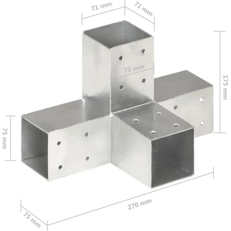 vidaXL Łączniki w kształcie X, 4 szt., galwanizowany metal, 71x71 mm