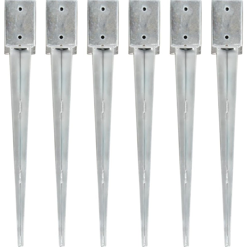 vidaXL Kołki gruntowe, 6 sztuk, srebrne, 9x9x75 cm, stal galwanizowana (145414)