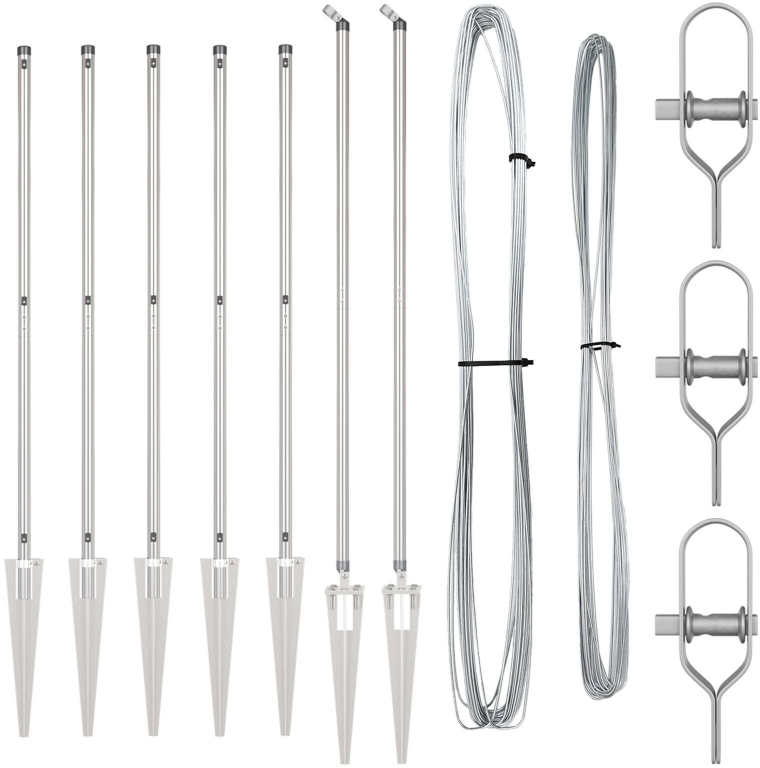 - Delivery Contains: 5 x Post, 2 x Angle post, 5 x Spike, 2 x Angle spike , 5 x Plastic cap, 15 x Plastic tension wire supporter, 2 x Angle post hardware, 3 x Tensioner, 1 x 25 m Binding wire, 1 x 33 m Tension wire