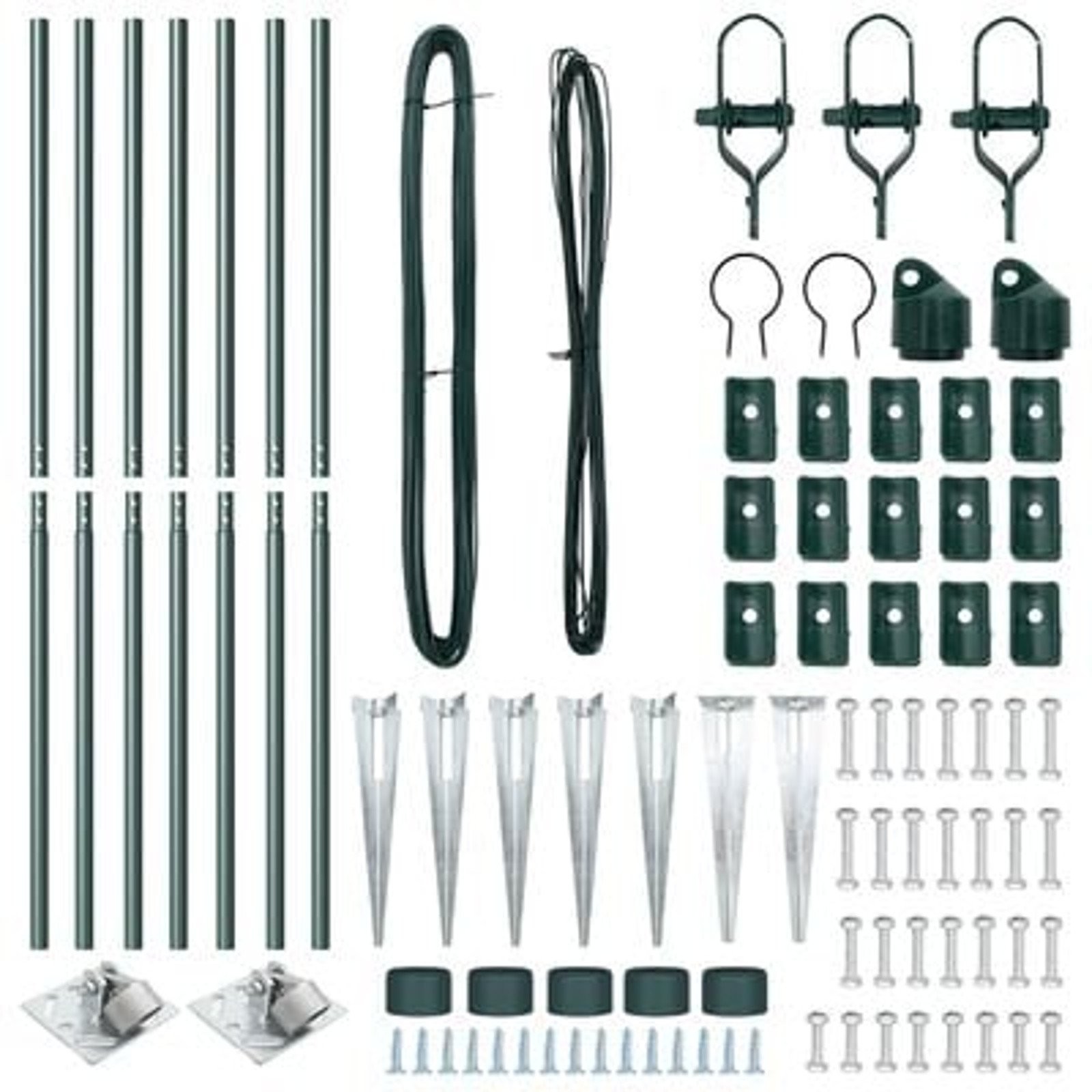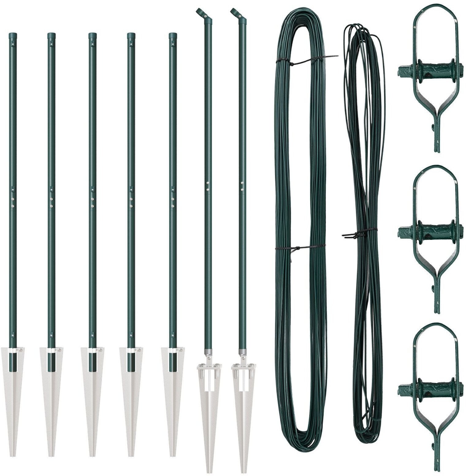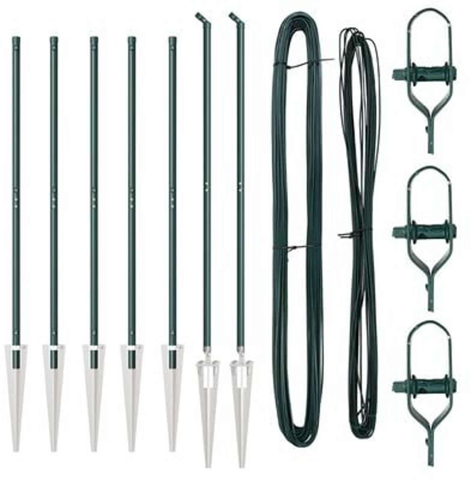 - Delivery Contains: 5 x Post, 2 x Angle Post, 5 x Spike, 2 x Angle Spike, 5 x Plastic Cap, 15 x Plastic Tension Wire Supporter, 15 x Crew on the Plastic Supporter, 2 x Angle Post Cap, 2 x Angle Post Hardware, 3 x Tensioner, 1 x 25m binding wire, 1 x 33m tension wire