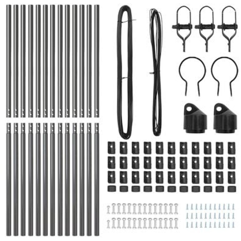 - Delivery Contains: 11 x Post, 2 x Angle post, 11 x Plastic cap, 33 x Plastic tension wire supporter, 2 x Angle post cap, 2 x Angle post hardware, 3 x Tensioner, 1 x 25 m Binding wire, 1x 80 m Tension wire
