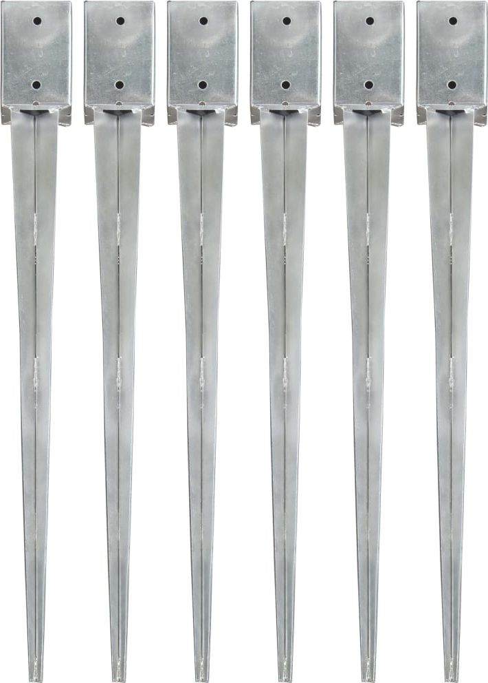 vidaXL Kołki gruntowe, 6 sztuk, srebrne, 9x9x90 cm, stal galwanizowana (145417)
