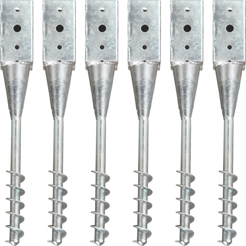 - Kołki gruntowe, 6 sztuk, srebrne, 10x10x57 cm, stal.