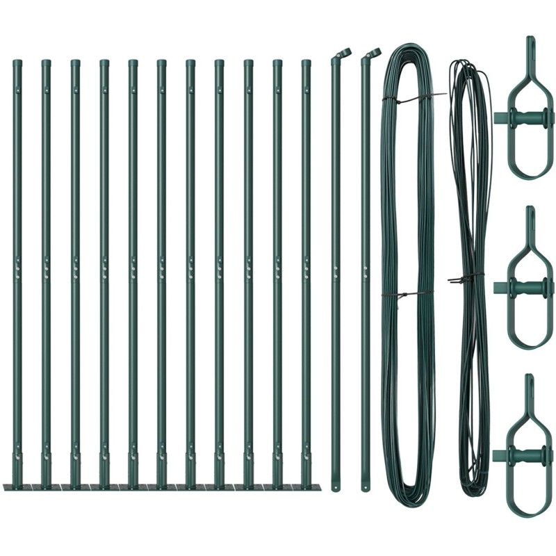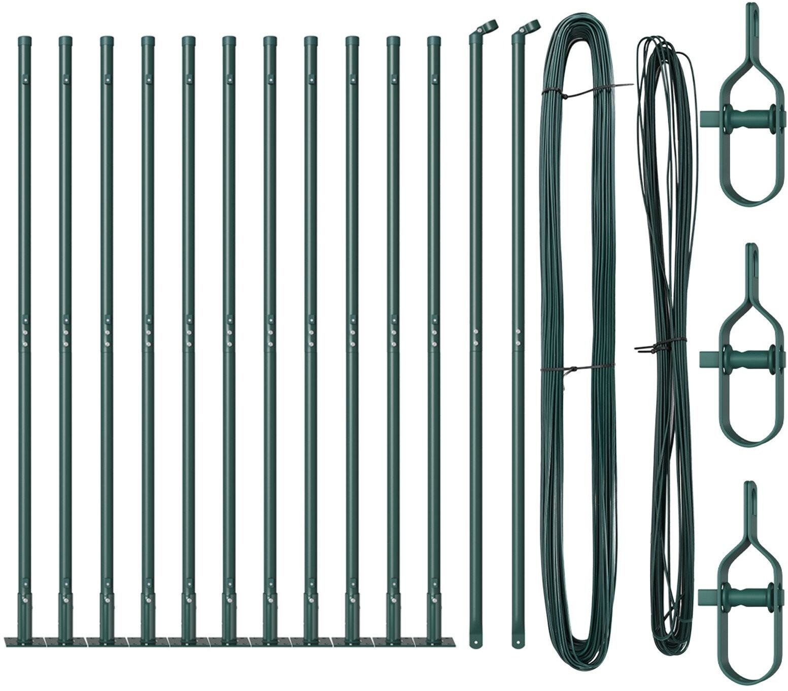 - Delivery Contains: 11 x słupek, 2 x słupek kątowy, 11 x podstawka, 11 x plastikowy korek, 33 x plastikowy wspornik naciągu, 2 x korek słupka kątowego, 2 x akcesoria do słupka kątowego, 3 x naciągacz, 1 x 25 m drutu wiążącego, 1 x 80 m drutu naciągowego