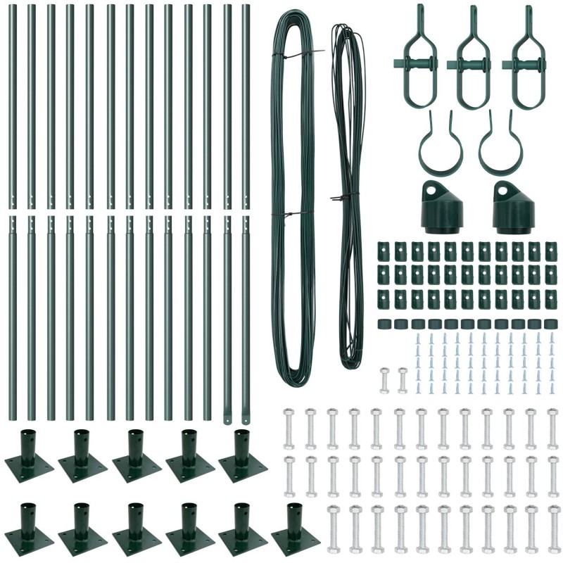 vidaXL Zestaw słupków ogrodzeniowych z podstawkami Zestaw 26 Zielony Metal