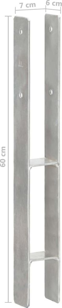 vidaXL Kotwy do słupków, 6 sztuk, srebrne, 7 x 6 x 60 cm, stal (145294)