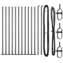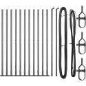 - Delivery Contains: 11 x Post, 2 x Angle post, 11 x Base plate, 11 x Plastic cap, 33 x Plastic tension wire supporter, 2 x Angle post cap, 2 x Angle post hardware, 3 x Tensioner, 1 x 25 m Binding wire, 1 x 80 m Tension wire