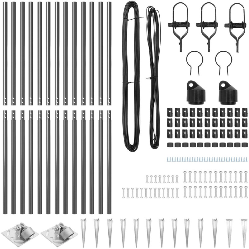 - Delivery Contains: 11 x słup, 2 x słup kątowy, 11 x szpikulec, 2 x szpikulec kątowy, 11 x plastikowa osłona, 33 x wsparcie napięcia z tworzywa sztucznego, 33 x śruba na plastikowym wsparciu, 2 x osłona słupa kątowego, 2 x elementy montażowe słupa kątowego, 3 x napięcie, 1 x 25m drutu wiązałkowego, 1 x 80m drutu napięcia