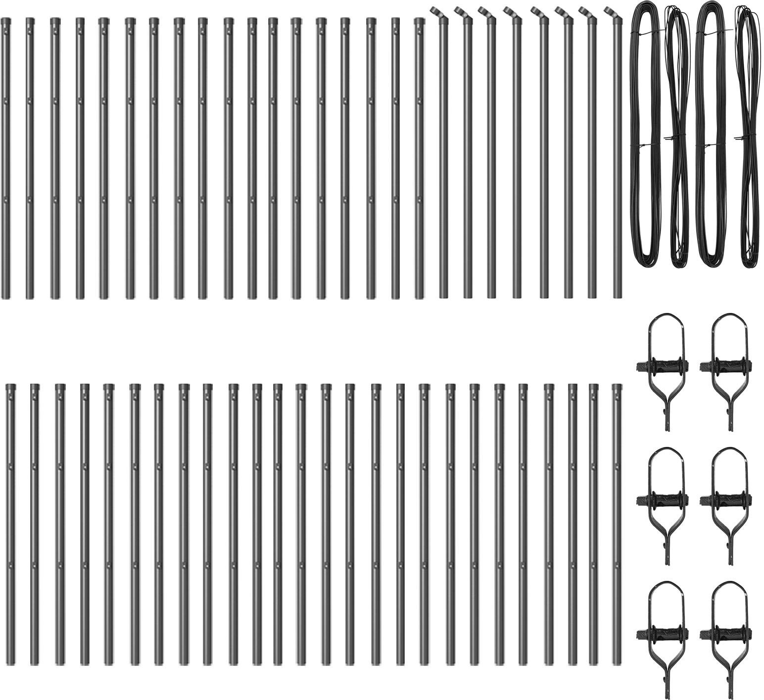 Słupki ogrodzeniowe 52 szt. Szare 32 mm 80 cm Stal ocynkowana