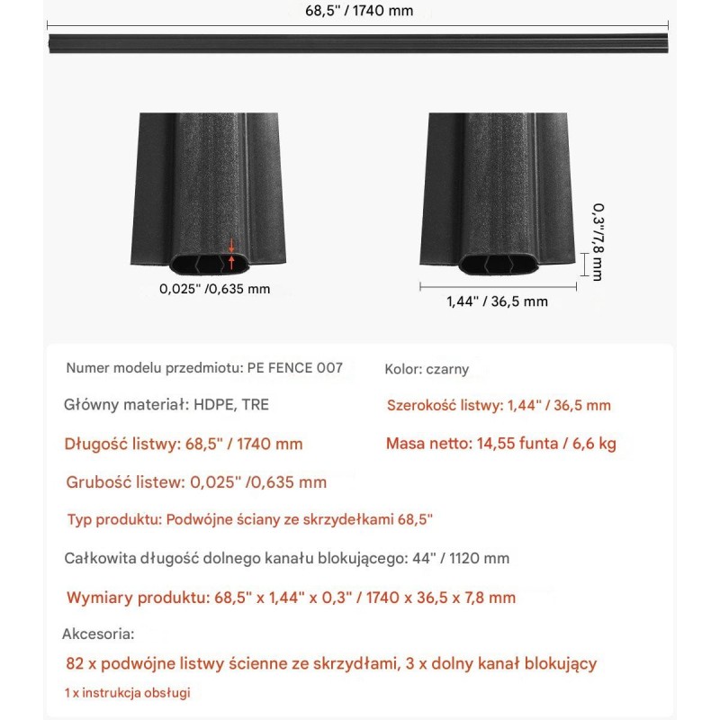 - Wymiary produktu: 1740 x 36,5 x 7,8 mm
