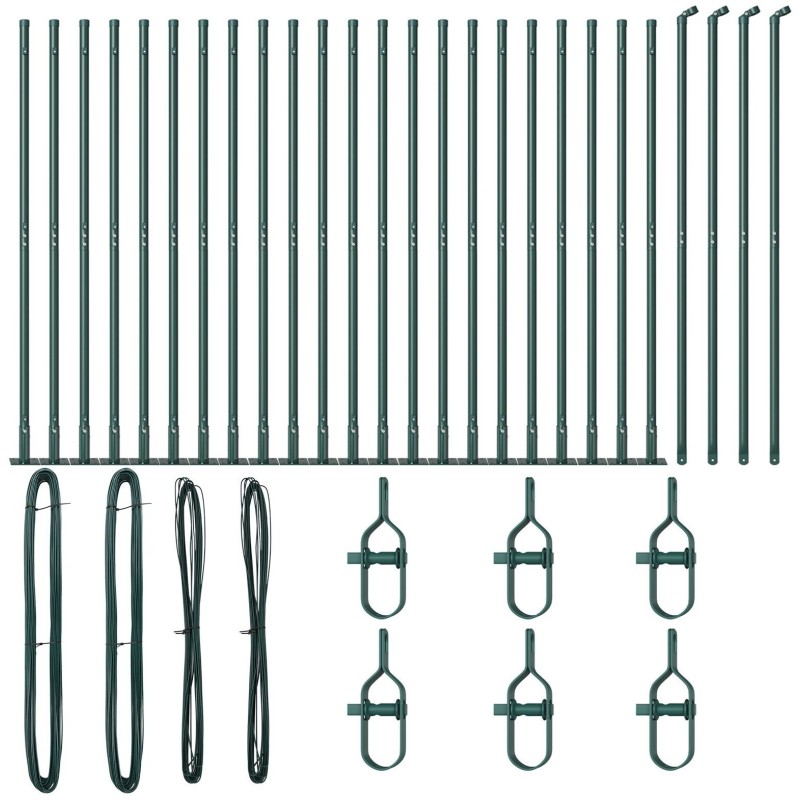 vidaXL Słupki ogrodzeniowe Zestaw 52 Zielony Stal 3.2 x 3.2 x 88.5 cm
