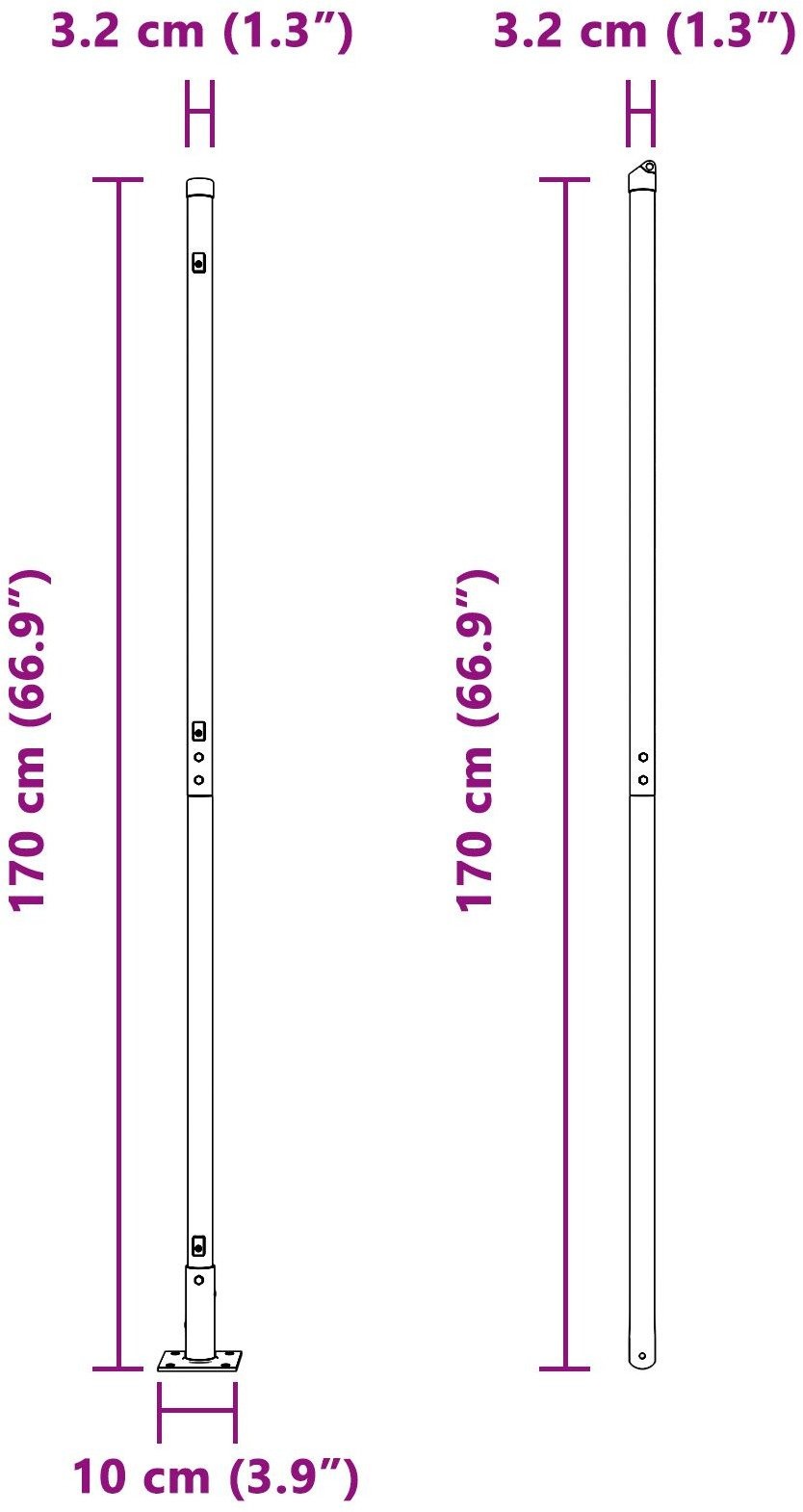 - Dimensions: 3.2 x 3.2 x 88.5 cm (L x W x H)