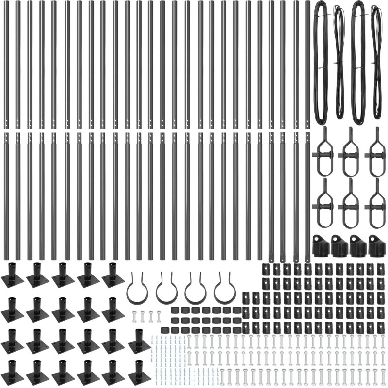 - Delivery Contains: 22 x słup, 4 x słup kątowy, 22 x podstawa, 22 x plastikowa nakrywka, 66 x plastikowy stoper napięcia, 4 x nakrywka słupa kątowego, 4 x akcesoria do słupa kątowego, 6 x napinacz, 2 x 25 m drutu do związania, 2 x 80 m drutu napinającego