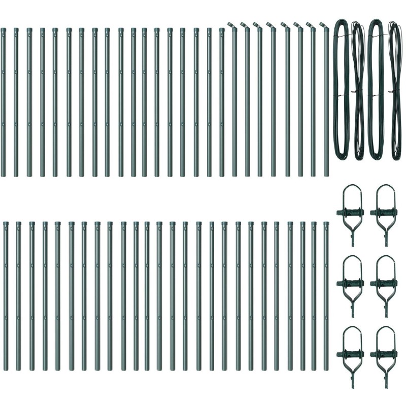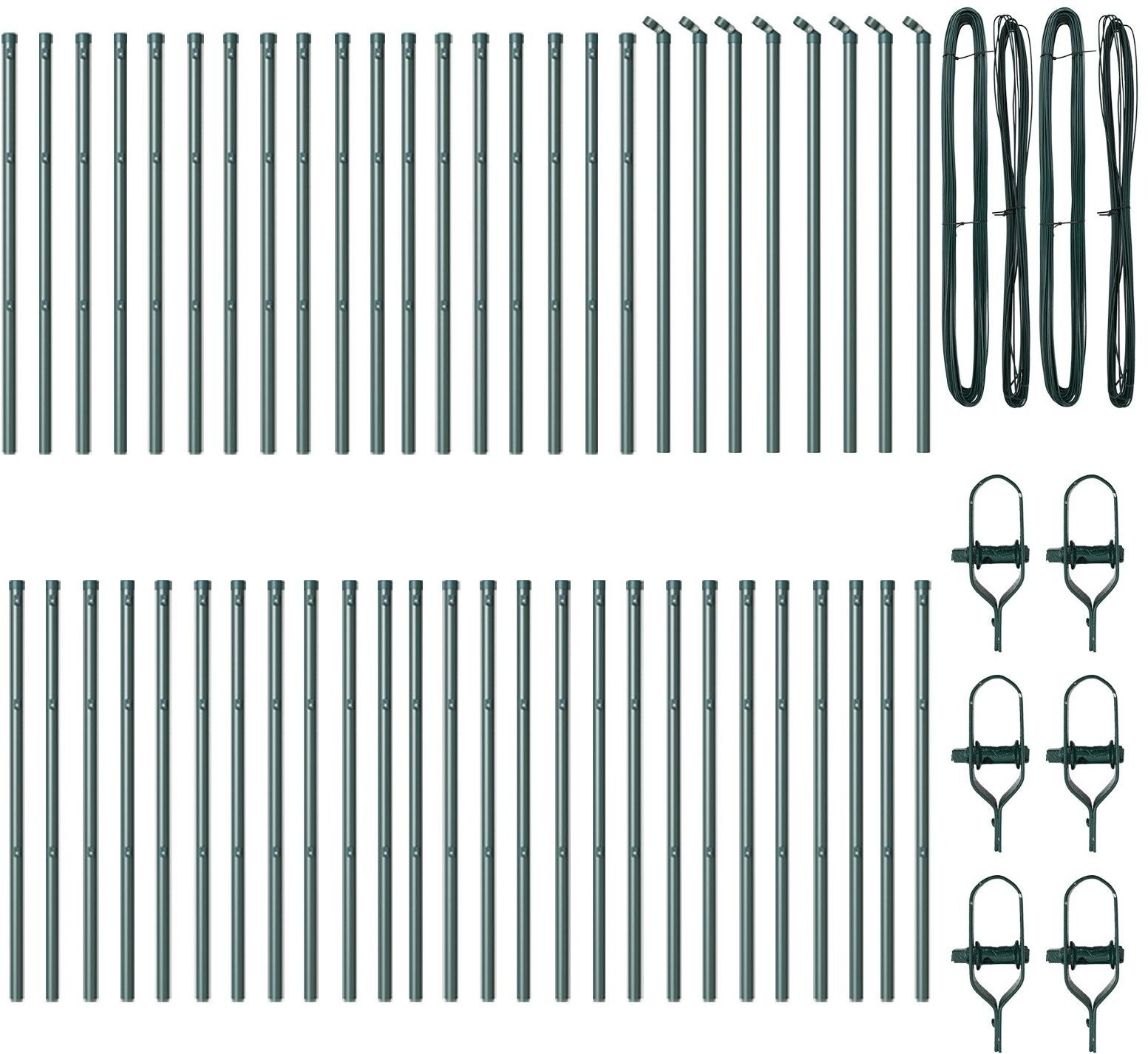 Słupki ogrodzeniowe 52 szt. Zielony 32 mm 100 cm Stal ocynkowana