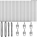 - Delivery Contains: 22 x Słupek, 4 x Słupek kątowy, 22 x Płyta podstawowa, 22 x Pokrywka plastikowa, 66 x Wsparcie drutu napięciowego plastikowego, 4 x Pokrywka słupka kątowego, 4 x Akcesoria dla słupka kątowego, 6 x Napinacz, 2 x 25 m Drut wiążący, 2 x 80 m Drut napięciowy